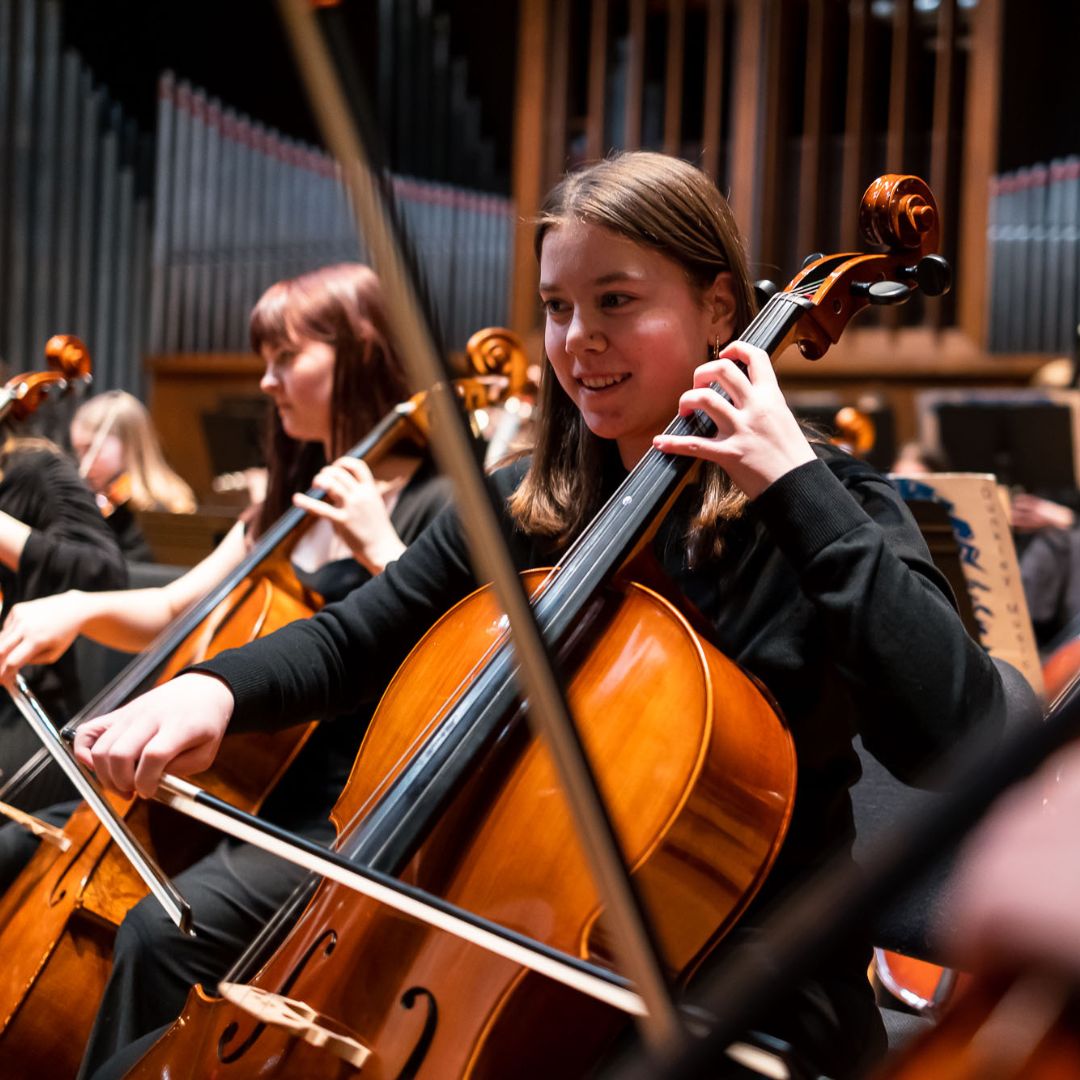 Symphonic and Concert Orchestras are open to violin, viola, cello, bass, flute, oboe, clarinet, bassoon, horn, trumpet, trombone, tuba, & percussion students in